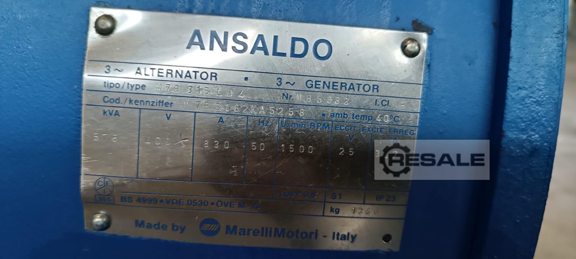 Marelli Motori AC Generator M7B 315 LD 4 AC synchronous generator from 1995 with 1,360 operating hours. 1 available 400 V/50 Hz – 575 KVA Manufacturer: MarelliMotori Model: M7B 315 LD 4 Type: AC Synchronous Generator Serial Number: MB5883 Power [KVA]: 575 Voltage [V]: 400 Frequency [Hz]: 50 Current [A]: 830 Speed [1/min]: 1,500 Year of Make: 1995 Hours: 1360 Dimensions LxWxH [cm]: 1.40 x 0.90 x 1.20 Weight [kg]: 1.346