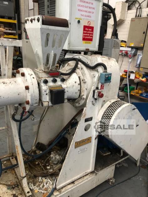 1 х Berstorff GmbH 250mm ситечко экструдер, Год выпуска: 1988, Соотношение L/D 7:1, питание ролика корма (300 мм в ширину), с 120 кВт, 1800rpm DC переменной скорости двигателя, установленного на верхней части коробки передач (пояс диск), с трубчатой головкой и ножом в верхней части для экструзии листа. В комплекте с панелью управления и т.д. и в очень хорошем состоянии.