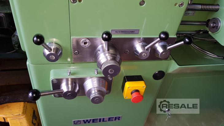 Weiler Commodor completely overhauled - not only repainted! Operating hours after the recovery zero! Technical data Max rotary diameter over bed: approx. 380 mm Max rotary diameter via support: approx. 190 mm Max rotary length: approx. 1000 mm Spindle passage: approx. 56 mm Speed range: approx. 25 - 2000 rpm Spindle nose: A 2 - 6 Drive power: approx. 4.0 kW Automatic Laengs and PlanVorschuebe: approx. 0.011 - 0.8 mm/U Tailstock: MK 4 Accessories: * Cooling agent with spaenew anne and spaen protection wall * Digital display * 3 baking lining * Multifix size B with 1 changeable bag Jusxbq Aeussere dimensions: L x W x H: approx. 2300 x 1200 x 1600 mm Weight: approx. 1600 kg Special price