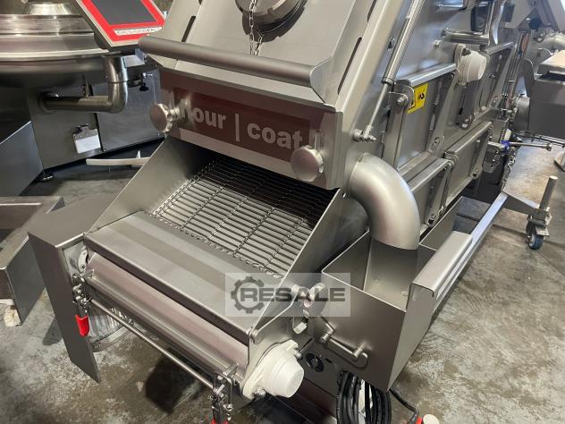 complete stainless steel Track width 600 mm Adjustable height of the finished product from 2 to 35 mm stepless speed (lower and top belt can be adjusted separately) with executable belt Mobile 0.5 kW Dimensions (L x W x H) : ± 2,250 x 1,000 x 2,100 mm