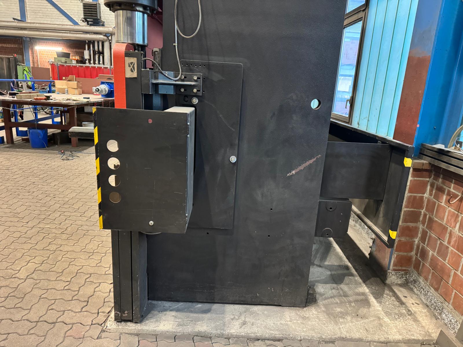 pressure: 80.0 t chamfer lenght: 2570 mm distance between columns: 2125 mm column arm: 420 mm table width: 60.0 mm ajustment speed: 100 mm/sec working feed: 10.0 mm/sec return speed: 100 mm/sec stroke: 200 mm dayligth: 470 mm table height: 960 mm Number of working hours: ~ 33.100 h oil volume: 90.0 l total power requirement: 9.0 KW weight of the machine ca.: 5750 kg. range L-W-H: 3630 x 2450 x 2550 mm Equipment: - AMADA CNC control, model OPERATEUR II Manual control for fine adjustment of the axes - CNC control OPERATEUR 2 in 8 axes (X1 X2,Y1 Y2,R1 R2,Z1 Z2) - CNC-controlled backgauge adjustment (X1 X2) - CNC-controlled vertical adjustment of the fence fingers (R1 R2) - CNC-controlled adjustment of the stop fingers left-right (Z1 Z2) - Swivel operation, front left - 1x freely movable foot switch - Top tool holder with top wedge crowning (AMADA system) - Rear safety guard (safety grid) - ...