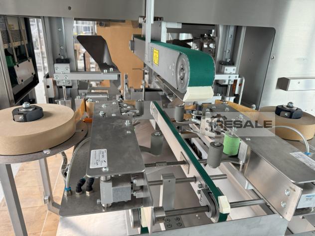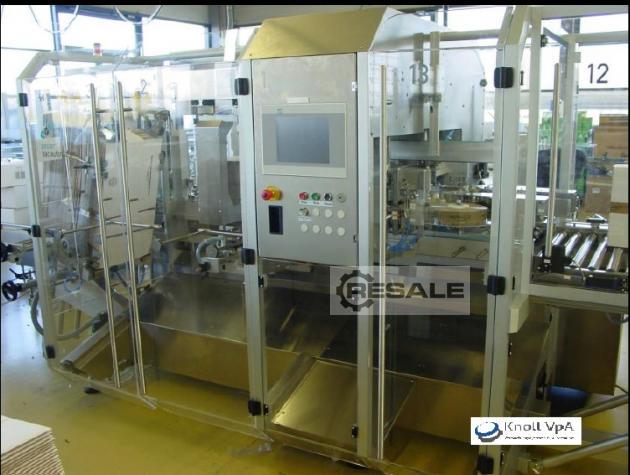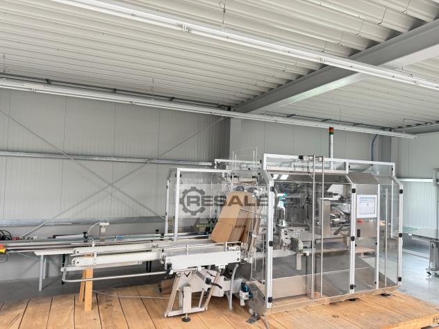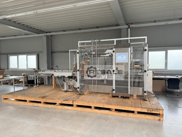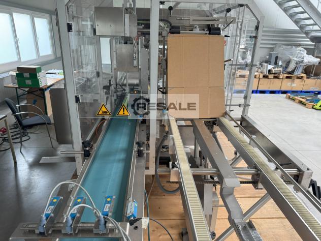自动最终包装系统(工厂于2012年全面修订)。用于装 运箱中折叠纸箱的最终包装。系统包括进料带、2 种格式、槽上的 Seidenader 摄像系统、出口处的提升站和其他配件