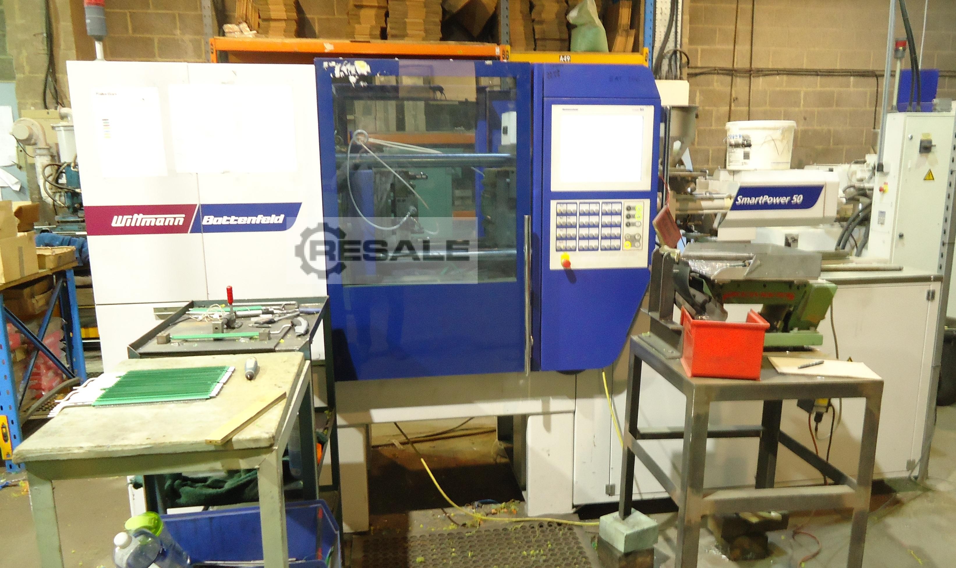 Nr ref.: 16369 Hersteller: BATTENFELD Rok budowy: 2005 Jednostka zaciskowa Siła mocowania: 75 ton Skok otwarcia: 800 mm Odległość między ściągaczami: 405 x 405 mm Wysokość formy min.: 150 mm Maksymalna wysokość formy: 480 mm Jednostka wtryskowa Średnica: 18 mm Objętość wtrysku: 30 cmâ³ Waga wtrysku: 27 g Ciśnienie wtrysku: 2440 bar Wymiary i waga Wymiary: 4,5 x 1,7 x 2,0 m Masa maszyny: 4500 kg