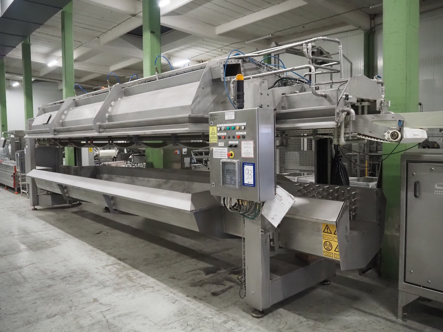 REF-2531 CARNITECH CT2612 REMOVEDOR DE PINBONE DE SALMÃO DE PISTA DUPLA Esta máquina é projetada para remover os ossos de pinos de filetes de salmão e truta. Feito de aço inoxidável. Fácil operação e limpeza. É necessário apenas um trabalhador. Fabricante: CARNITECH. Modelo: CT2612.25. Ano: 2003. Capacidade: até 18 filetes/min por faixa (capacidade total 36 filetes/min). Tamanho do produto: filetes de 0,5 a 3-4 kg. Tensão: 3 x 400 V + N + PE, 50 Hz, 16 A. Consumo de água: 12 l/min. Dimensões totais: comprimento 1.700 mm; largura 850 mm; altura 1.820 mm. Largura da correia: 580 mm. Peso: aprox. 150 kg.