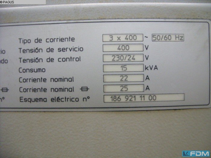 CONTROLS CNC controls SIEMENS 840 D WORKING RANGE -CUBIC- number of processing axes (excl parallel axes): 4 X-axis travel: 550 mm Y-axis travel: 320 mm Z-axis travel: 360 mm TABLE table surface (left-right): 820 mm workpiece load (max): 500 kg SPINDLE / HEAD spindle revolutions (max): 24000 /min tool fixture: HSK A50 AXIS DRIVES rapid traverse: 75000 mm/min TOOL MAGAZINE number of positions: 24 AUTOMATIC WORKLOAD EQUIPMENT workpiece manipulator: articulated robot store type: table changer number of store positions: 2 ELECTRICAL SPECIFICATIONS mains voltage: 400 V mains frequency: 50 Hz DIMENSIONS / WEIGHTS total weight approx.: 7700 kg ATTACHMENTS guideway covers: yes &n ...