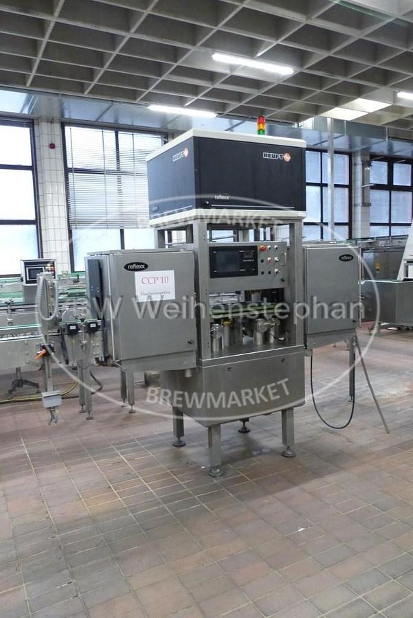 Additional title: Residual liquid, bottom, mouth, sidewall control, Capacity: 32000 bottles/h, Power: 3,6 kW, Voltage: 400 V, Frequency: 50/60 Hz, Compressed air: min. 6 - max. 10 bar, Length: 2,5 m, Width: 1 m, Height: 2,5 m, Weight: 1700 kg, Formats: Longneck-, Steini-, Vichy- 0,33 l bottles / 0,5 Longneck-, NRW- 0,5 l bottles, Running direction: right-left, Operation / Control: Heuft, Features: residual liquid, bottom, body, mouth, side wall