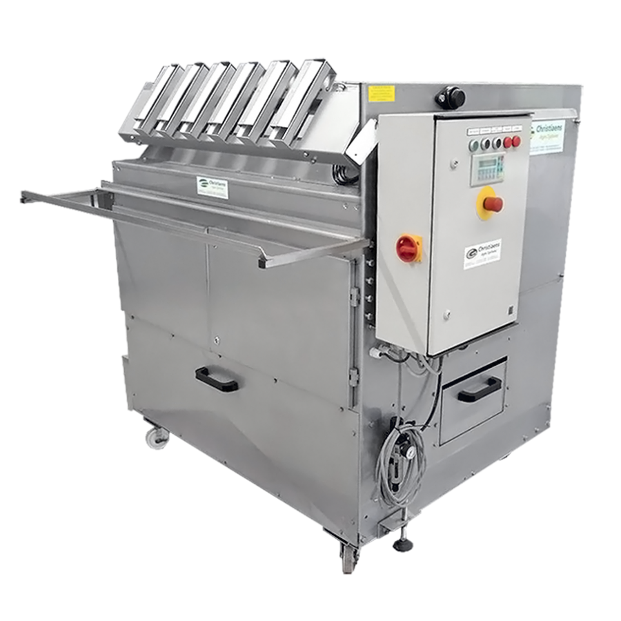 ASPARAGUS PEELER, CHRISTIAENS AGRO SYSTEMS, TYPE: 1350-6 Technical description: Machine number: 062 906 Heads number: 6 Power supply: 380-440V/50-60 Hz Dimensions: 1650 x 2000 x 1600 mm