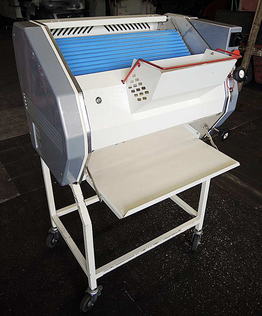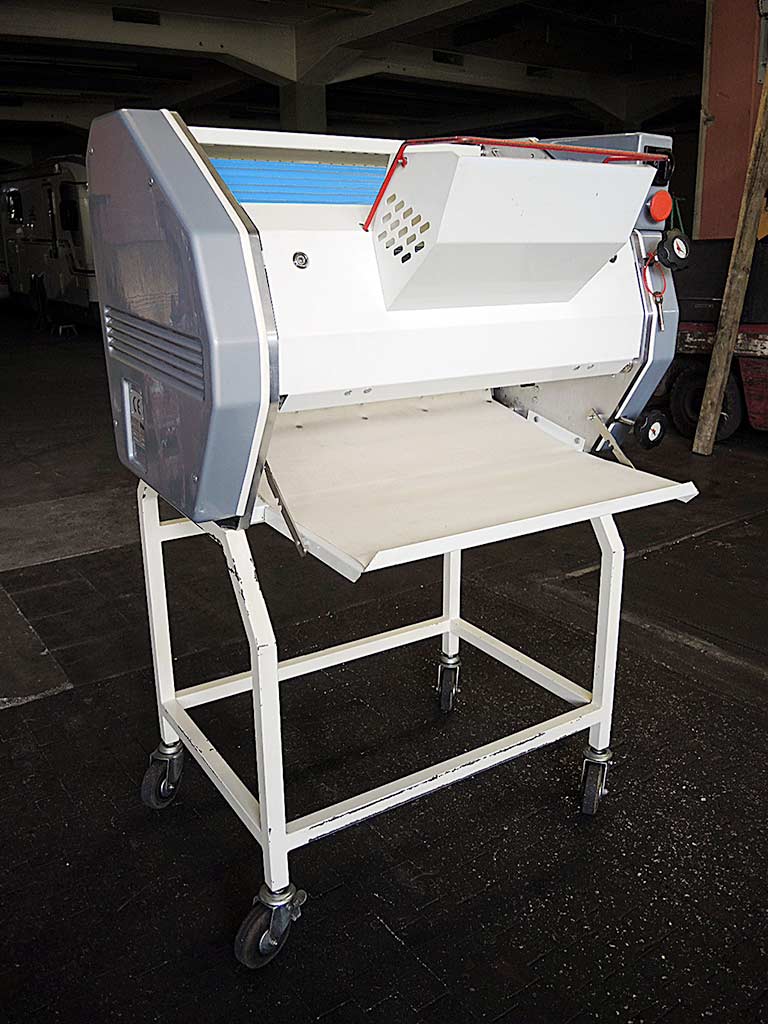带宽 进料输送机 校准头 包括面粉 加湿站 两把工具的切割框架 断头台 包括各种折叠鞋、切割辊和填充装置 包括2个螺旋滚轮 - 面包房拆解状态/未检测或清洁 - 剪断束带