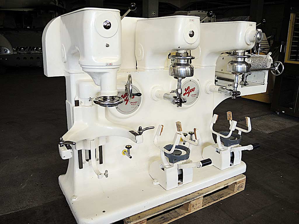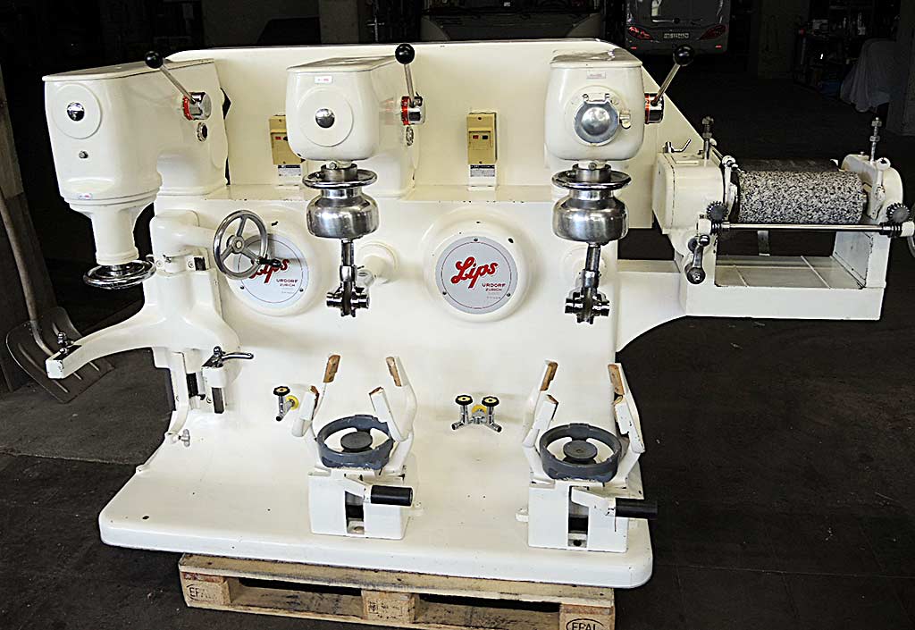 面团刨机/切割台组合 建设年份 2014年 半自动 胸围宽度:约64厘米 胸围长度:约150厘米 滚间隙 0.3-45毫米 配备两件工具的切削辊架 完全不锈钢 - 新奖章 - 经过测试和清洁