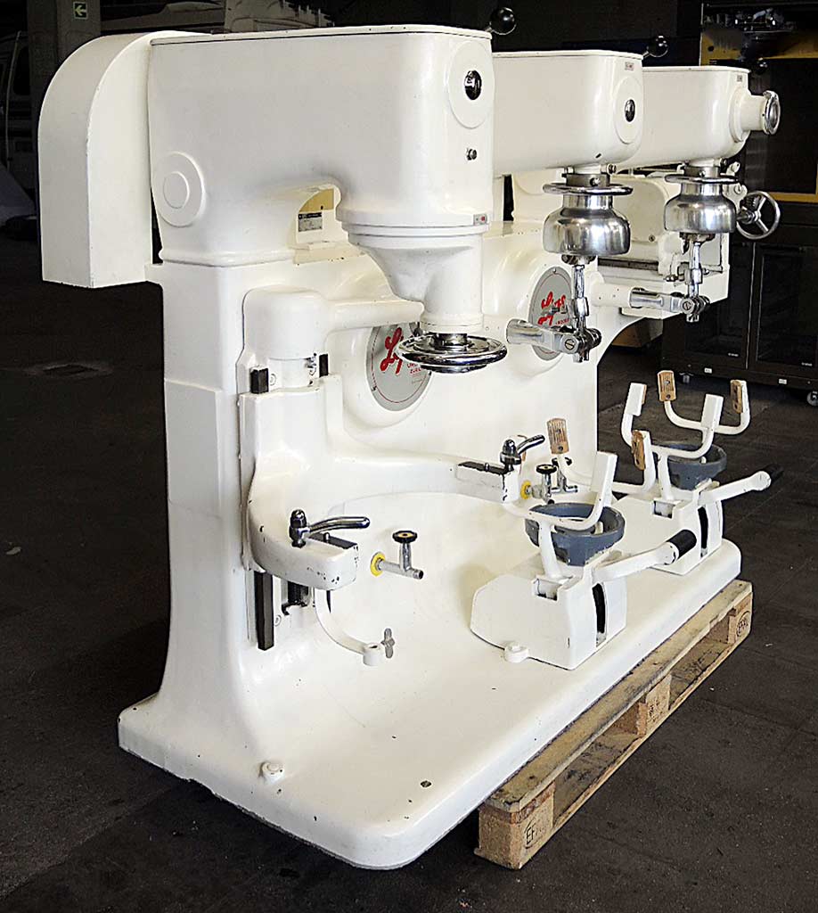 带状和长模 重量范围:500 - 2,000克/件 每小时产量:800至2,000件 丝带卷轴 250厘米针织长度 可调槽倾角 长模具长度可达最大产品长度50厘米 针织距离170厘米 不锈钢版本 包括2名制粉工 - 面包房状况未清理 - 部分是。需要大修