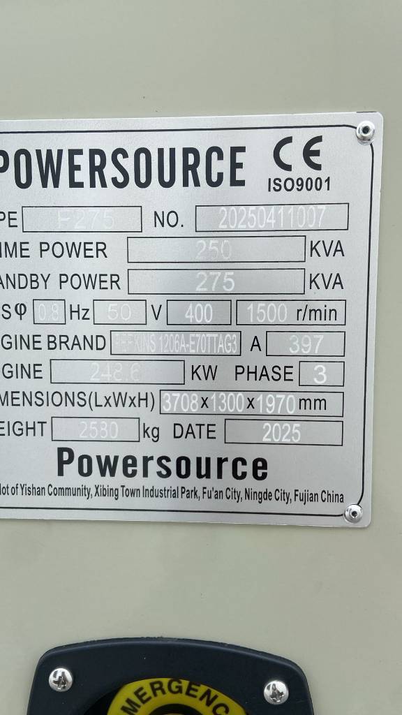 型号:1206A-E70TTAG3- 275 kVA Generator - DPX-19810