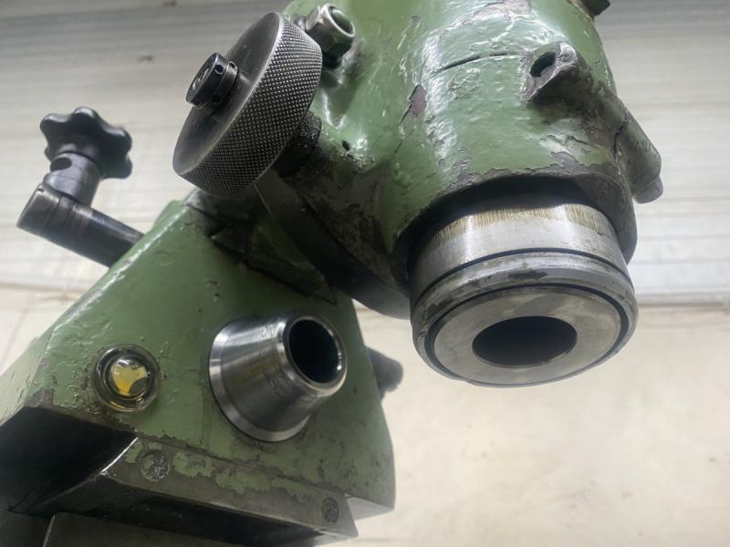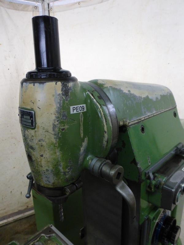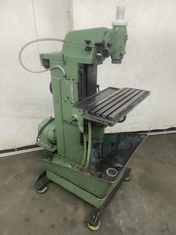 Fresadora de herramientas univ. DECKEL Tipo FP 1Masch. Nº 52185/08 Año de construcción 1968Distancias de recorrido X: 300 mm Y: 150 mm Z: 340 mmTamaño de la mesa 600 x 250 mmSoporte de husillo SK 40 - S20 x 2Velocidad del husillo 40-2000 rpm. 16 etapasPotencia del motor 1,0 y 1,4 kW conmutable por polosConexión a la red eléctrica 380 voltios, 50 Hz- Alimentación en los ejes X y Z- Dos velocidades del motor y 8 etapas de engranajes- Desplazamiento del pino en el cabezal de fresado vertical 60 mm- Mesa de ángulo fijo- Dispositivo de refrigeración en el pie de la máquina- Armario de control adyacente- Soporte para contador