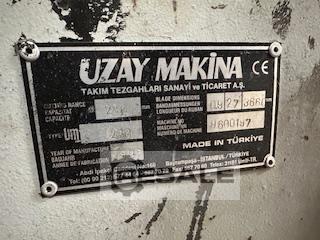 Scie à ruban automatique d’occasion Uzay Makina, type 280, largeur de coupe 280 mm, dimensions de la bande 09 | 27 | 3660 mm, N° de machine 9600197, 4,5 m x 3 m (L x l), 500 kg à vendre