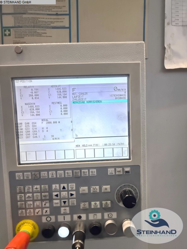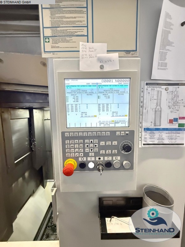 Article: Vertical turning and grinding centre Manufacturer: EMAG Type: VSC 250 DS Yob: 2008 Control: SIEMENS 840D Grinding spindle speed: 30,000 rpm Rotation spindle speed: 3,000 rpm Tool places turret: 12 Cooler for spindle and machine bed cooling Cooling lubricant - lifting station (no independent cooling lubricant supply) Chip conveyor Parts handling Air through the spindle Two clamping circuits through the spindle (air and oil) Unfortunately, the grinding spindle is defective. However, this can be overhauled in a spindle factory. Otherwise the machine is in a very good condition and fully functional. Please, contact us for getting more information and pictures on mail(at)tar-mc.com or www.tar-mc.com