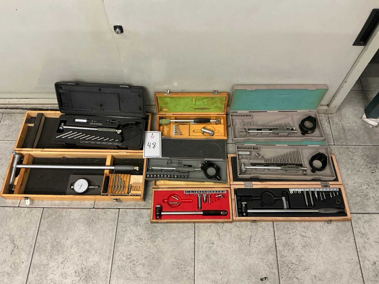 4 UNITS/SETS OF SDM0067 PACKED TOGETHER. A SINGLE SDM0067 CORRESPONDS TO: Precision bore gauge with two contact points, with elastic elements for centering. Lightweight and robust construction with CFRP elements for less thermal expansion and greater corrosion protection. Handle on the holder for less thermal influences. Smooth and precise transmission of the contact tip stroke via a curved segment. The different contact points with fixed hardened steel ball allow you to compose the different ⌀ to be measured. Application: For precision measurement of ⌀, roundness and cylindricity of internal bores and profiles. In wooden box. Range: 50-160 mm, Depth: 150 mm Machine condition: unchecked. Approx. Transport dimension: LxWxH 370 x 145 x 65 mm; Approx. Weight: 2kg The item for sale may not be the one shown in pictures, but will have equal specifications and performance. TOTAL APPROX. D ...