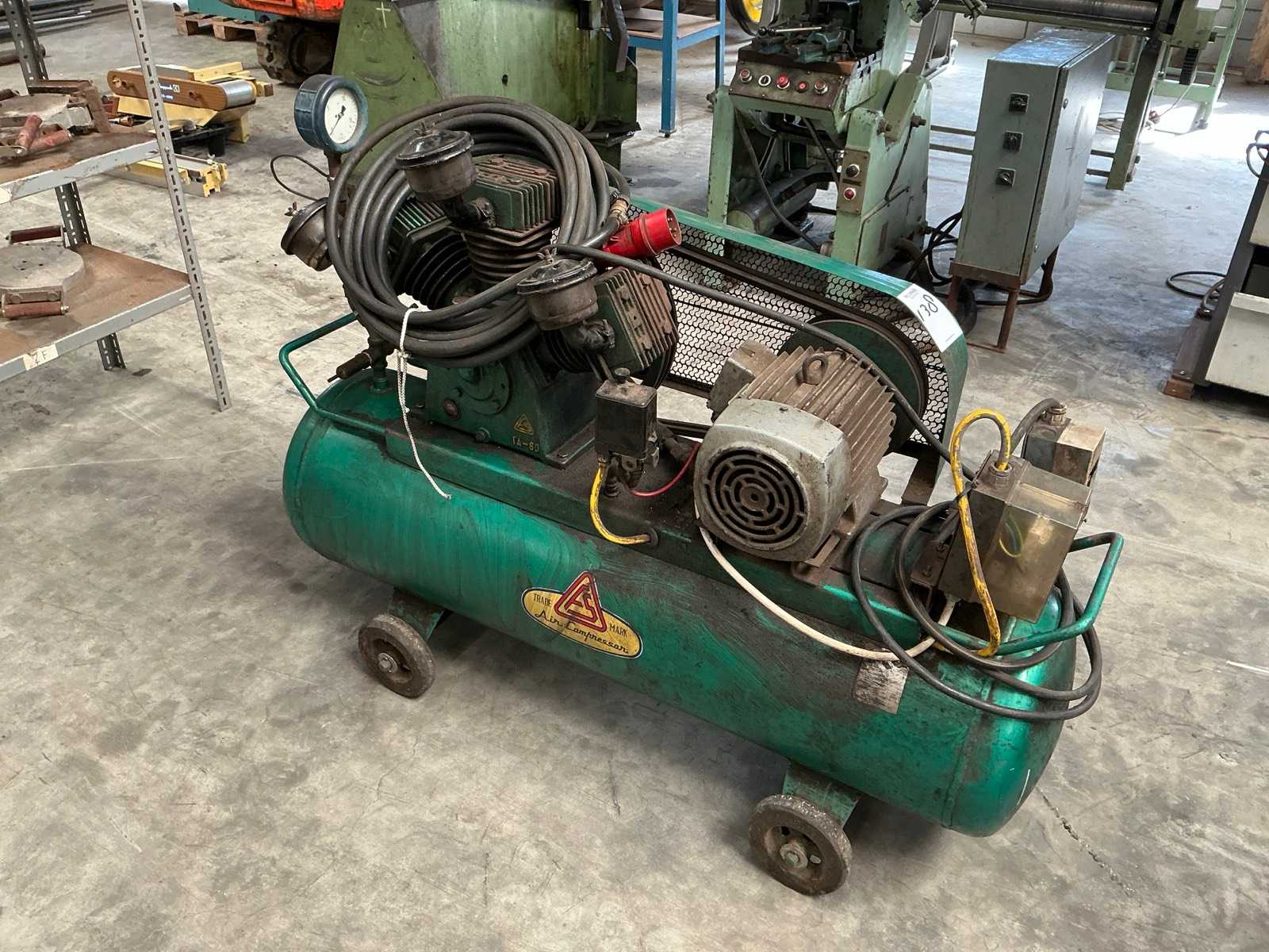Screw compressor with dryer. Pressure vessel capacity: 750 liters. Capacity: 3.09 m?/min. Max. pressure: 10 bar. Motor 22 kW.