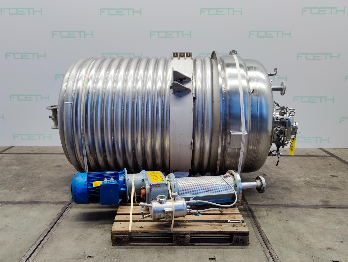General SKU331U668 MakeAngelo Pilotta LocationBarneveld TypeRG Pressure Working pressure5 Bar Vacuum possiblecheck Working pressure jacket12 Bar Main Features MaterialStainless steel Volume3200 Ltr. Motor8.8 KW Specified Features - Stainless Steel Reactor MaterialStainless steel 1.4401 (316) Stainless Steel Reactors Reactorcheck Capacity3200Ltr. (bruto 4100) Vessel sizesDia. 1460x2680 mm Dished bottomcheck Dished top sidecheck Manholecheck 280x390mm Top connectionscheck DN100,DN65, DN50(3x), 1/2(2x) OutletcheckDN50(2x) With jacketcheck 250Ltr+70Ltr. Max. temperature190°C With turbo stirrerCurved blade disc turbine Motorcheck 6/8.8kW, 400Volt, 980/1475rpm Speed mixing shaft100/150rpm Information No.1325 Year of construction1995 Floorspace1.,8x1,8m Total height3,6m Weight1450 kgPlastic & polymersCatalysts & fillersStainless Steel ReactorsSolventsDetergen ...