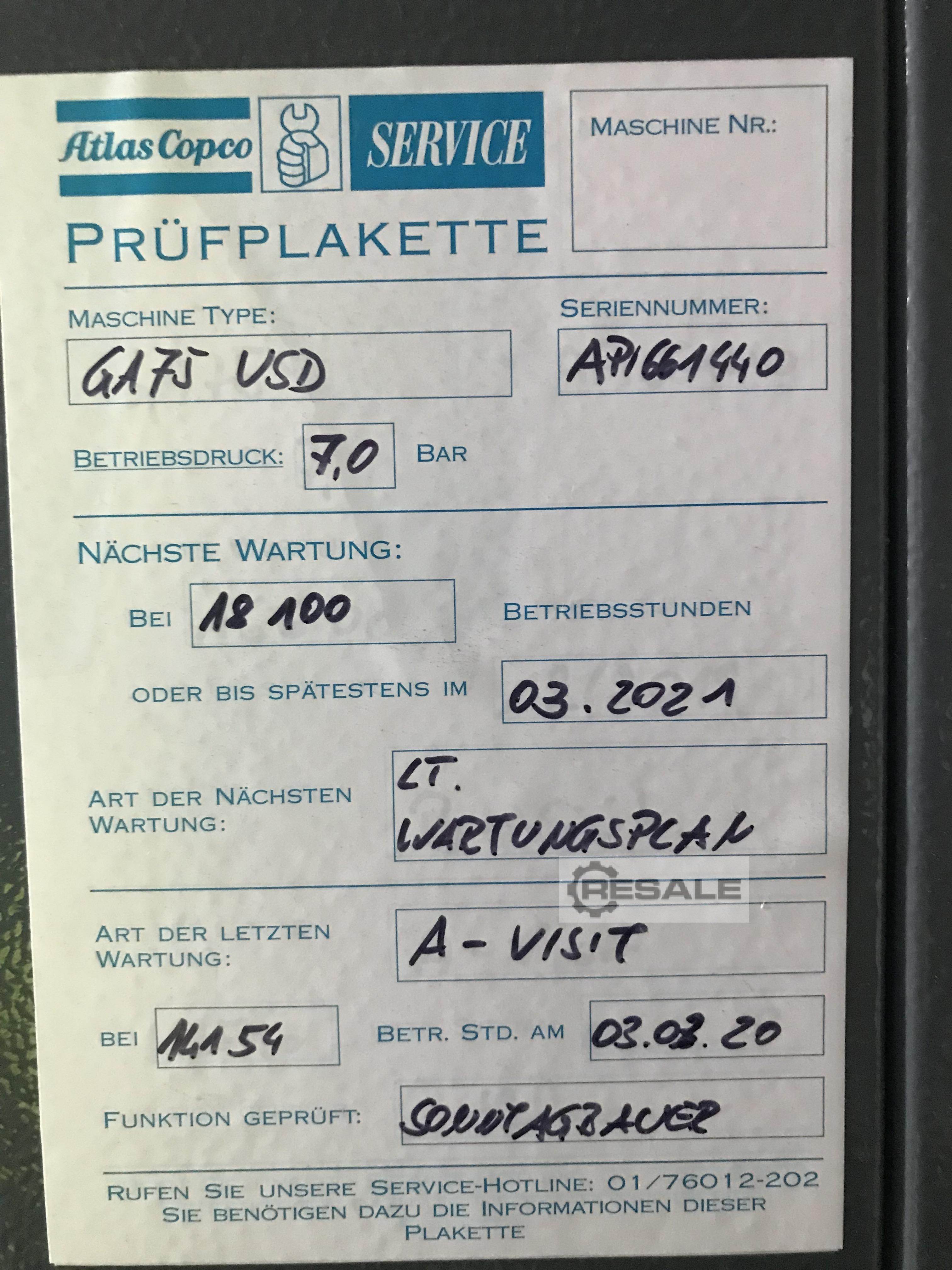 | 2011 | ATLAS COPCO | GA75VSD inkl.Trockner | 23900 EUR | [Oct 2013] |