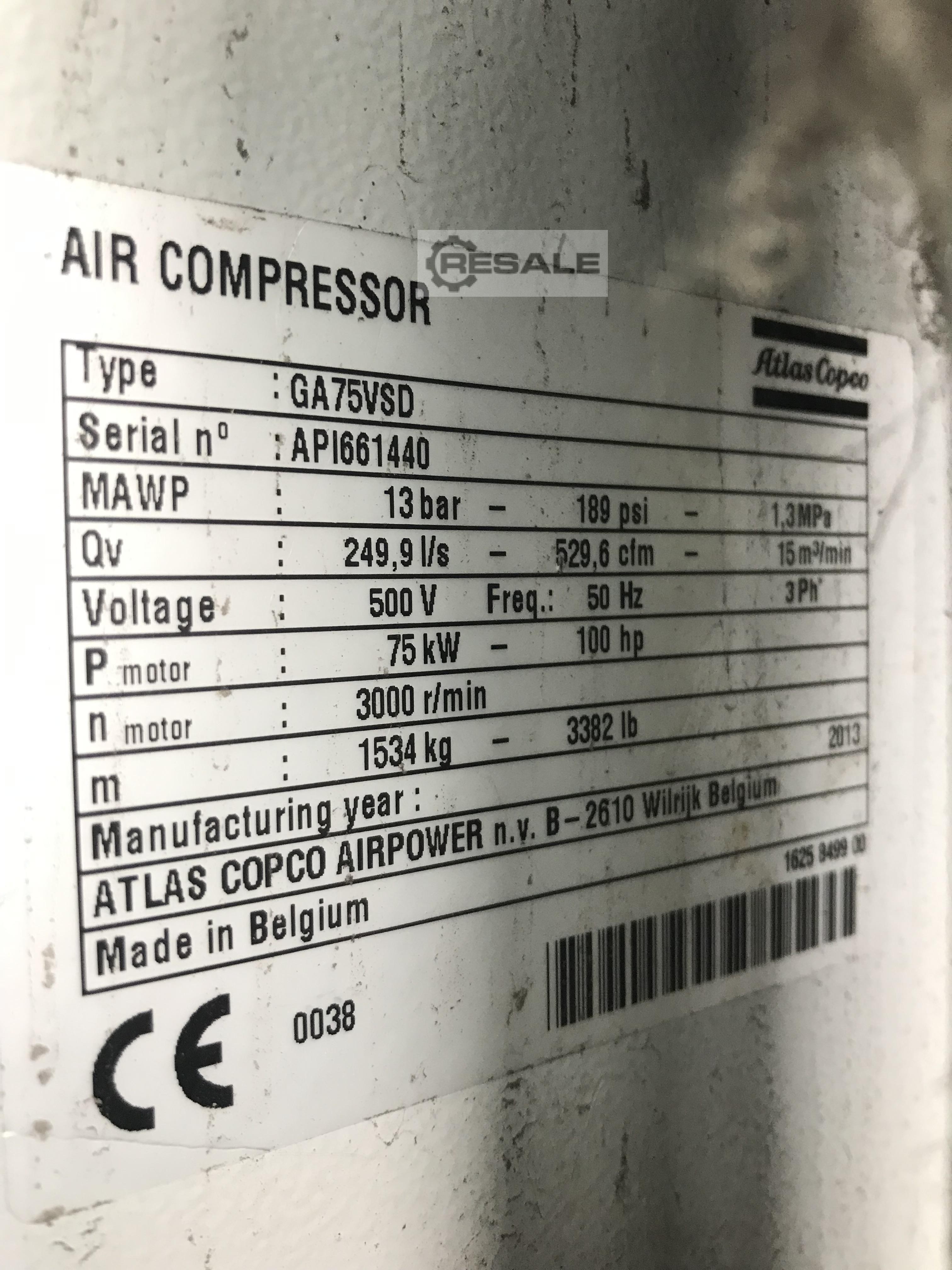 | 2013 | ATLAS COPCO | GA75VSD | 5500 EUR |