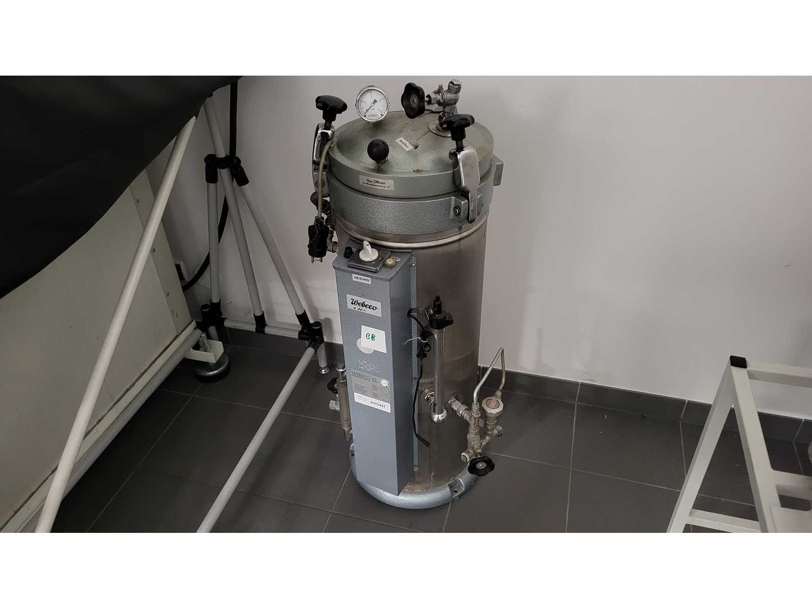 General SKU266U444 LocationBarneveld MakeMatachana Type211L1 Pressure Working pressure3 Bar Vacuum possiblecheck Main Features MaterialStainless steel Volume276 Ltr. Pressure3 Bar Vacuumcheck Specified Features - Autoclave Horizontal autoclavecheck Capacity276 Ltr. Internal width458 mm Internal depth955 mm Internal height458 mm Inlet/Outlet458x458 mm With trayscheck Tray sizes360x935 mm Electric heatedcheck Insulatedcheck With vacuum pumpLohe 25003 Motor1,1kW, 220/380Volt With pumpcheck Prisma 154 Motor0,7kW, 230/400Volt, 2800rpm With transport trolleycheck With timercheck MaterialStainless steel 1.4404 (316L) Information No.5546 Year of construction1995 With switchcheck Floorspace1,28x0,78 m Total height1,97 m Weight760 kg Extra SpecificationsSteamboiler type K91, volume 36,5 l. 330 KPa, 5000 cm2, 30 kW, chamber type 211L1, volume 276 l.AutoclavesM ...