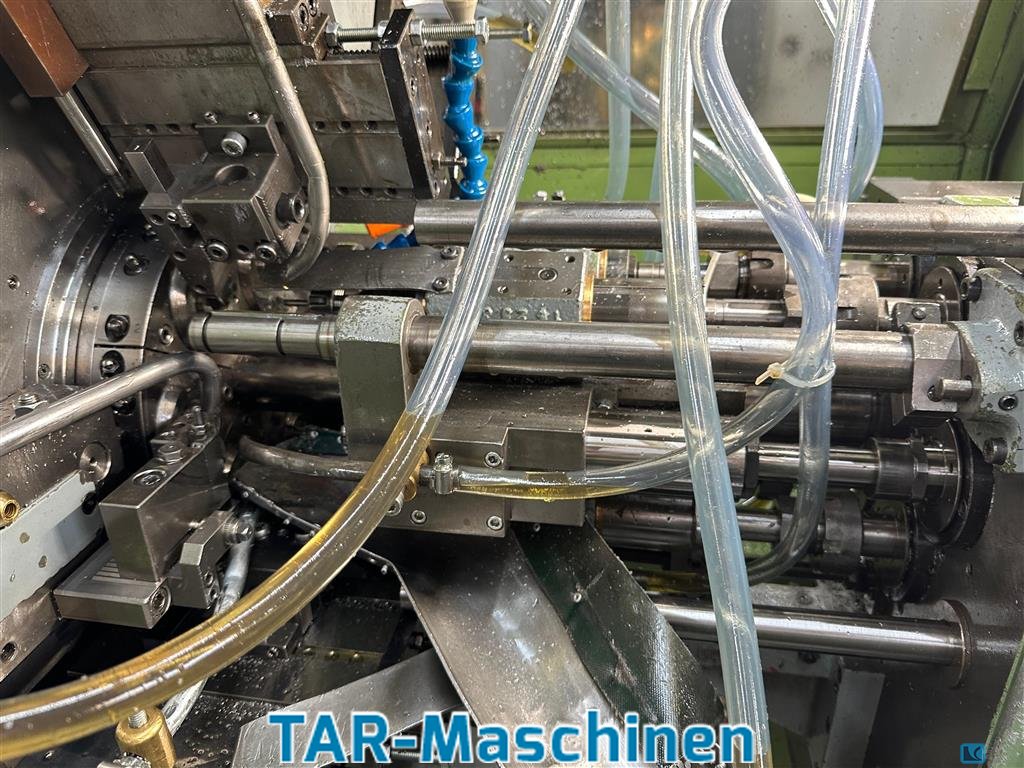 number of spindles:8 spindle passage:67 mm Cam controlled multi spindle automatic lathe, used 8 main spindles pick up in pos. 8 threading attachment CNC compound slide in pos. 5, also 2. speed in pos. 2 Hydraulic spindle brake in pos. 4 Incl. length measurement, incl. Brankamp cutting force monitoring tooling: could be different like pictures Please, contact us for getting more informations and pictures on mail@tar-mc.com or www.tar-mc.com