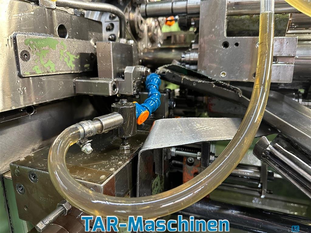 number of spindles:6 spindle passage:32 mm Article: cam-controlled multi-spindle automatic lathe Manufacturer: Schutte Type: SF32 S Dnt Yob: 2003 Eight-spindle automatic lathe with 6 main spindles max. nominal diameter: D=32mm Spindle drum with hirth coupling, Elbaron oil mist filter, sorting chute, Interface for: IEMCA PRA bar loading magazine (optional I: IEMCA PRA52/42/F); coolant tank with hinged chip conveyor; Schimpke KSS active cooler, control: Siemens S7-300 PLC; tooling included in delivery may differ from the images Please, contact us for getting more information and pictures on mail(at)tar-mc.com or www.tar-mc.com
