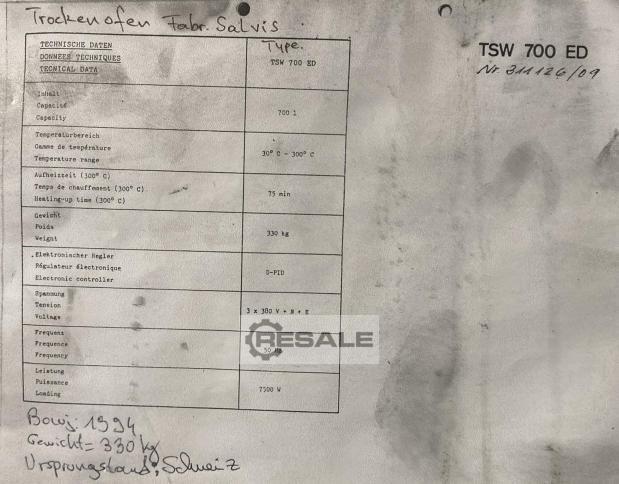 General SKU026E105 MakeEvans Universal Ltd. Leeds No.2042 Year of construction1999 Mounted on framecheck Specified Features - Drying oven Drying ovenZinc crucible furnace (1x) Number of compartments:1 Internal diameter425mm Internal height450mm, Inlet dia. 300mm Gas heatingBurner make Riello, type 40 GS 5 (120 KW) Information LocationBarneveld With switchgearcheck Floorspace4,2x2,1 M Total height2,3 M Weight2300 KGDrying ovensDiscountEvans LeedsDryers > Drying ovensDiscountBrand > Evans Leeds What you can expect from Foeth: -- Machine is in working condition -- At a reduced price compared to new -- Ready for shipping to any destination worldwide -- You are welcome to inspect the machine in Barneveld, The Netherlands. Please visit us in Barneveld for many more machines!