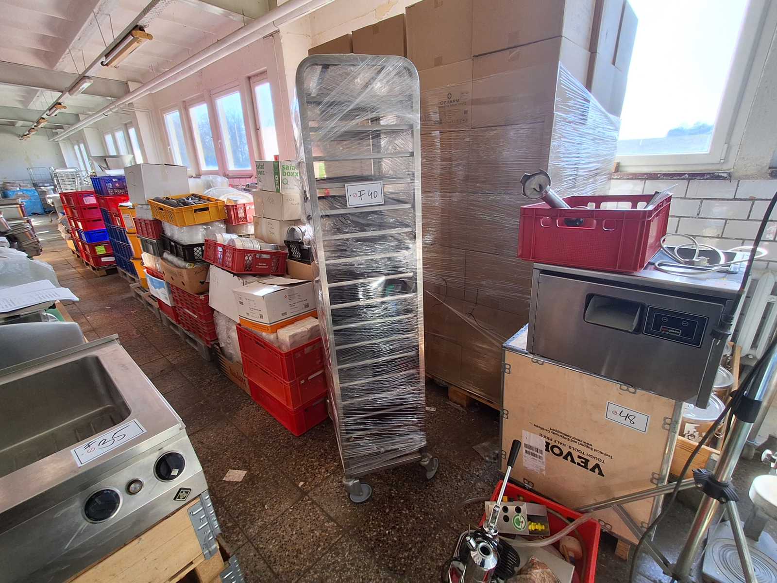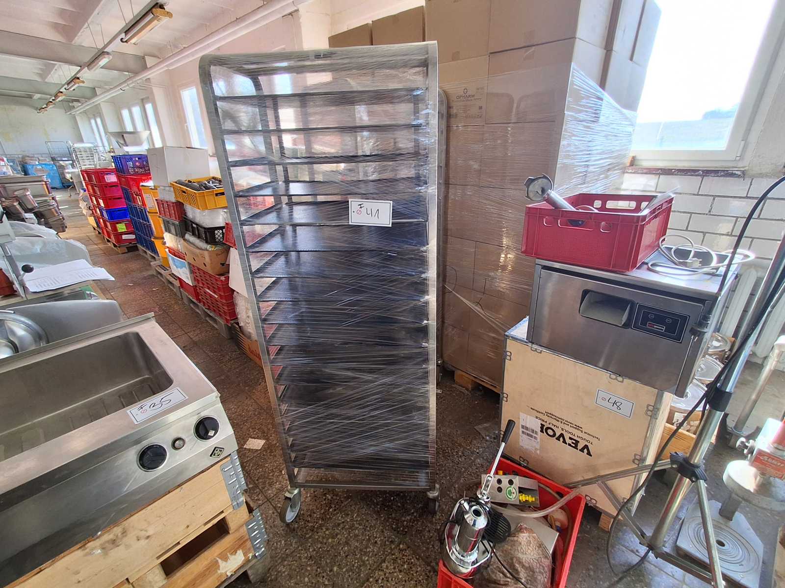 Stainless steel baking tray trolley with trays, apparently NEW + Unused with content 17 perforated baking trays Auction-ID: A7-45675-41