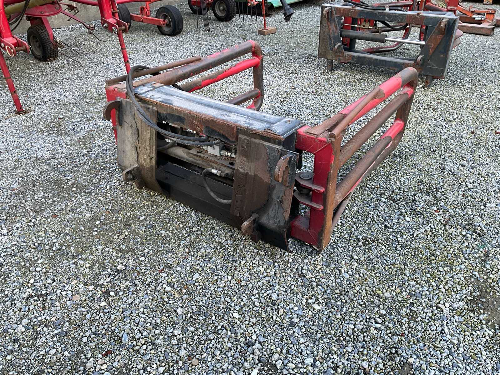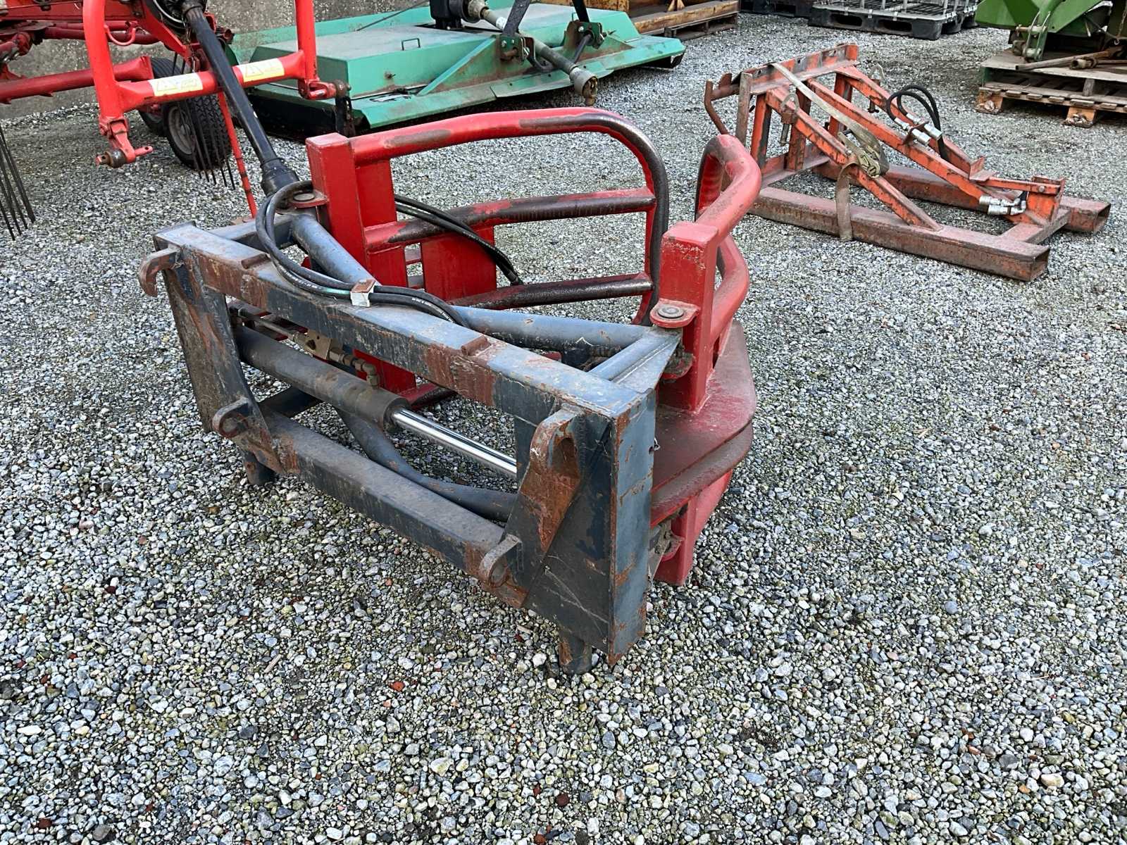 BIG bale fork with gripper, Technical data typical for: MHFRED34HD, - Load capacity: approx. 1,800 kg, - Dead weight: approx. 300 kg, - Number of tines: 3 main tines (for better grip of large bales), Area of application: Round and square bales, silage, hay
