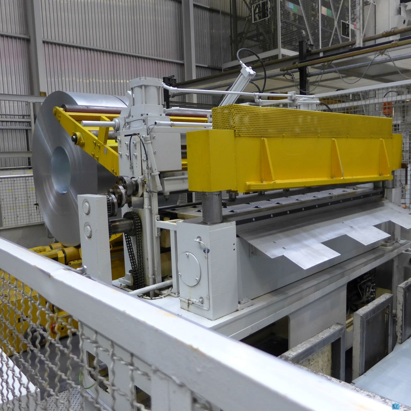 band width:2000 mm plate thickness:1.8 mm number of rolls:13 Controls:SIEMENS DECOILER:. - design : single coil :. - sheet width max:2000 mm - sheet width (min):400 mm - max. weight of coil:30 to - max. diameter of coil:2000 mm - min. internal diameter of coil:610 mm FEEDERS:. - sheet width max:2000 mm - sheet thickness max:2 mm - feeding step max.:4000 mm LEVELER UNIT:. - sheet width max:2000 mm - sheet width (min):400 mm - sheet thickness max:1.8 mm - sheet thickness (min):0.6 mm - number of leveler rolls:13 - diameter of leveler rolls:50 mm