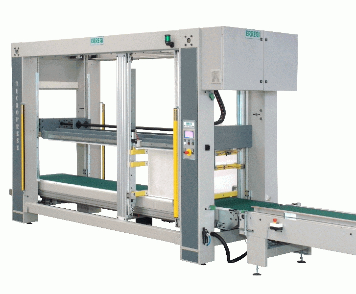 Throughfeed case clamp Make: ERREGI Type: Tecnopress VR2/2 New machine Fast - Silent - Clean - Lean - Universal - Service by Wehrmann Technical data: Self-positioning thru-feed carcase press The load bearing structure of the machine consists of a double portal in welded tubular steel, inside of which the two mobile heads and the presser table run. -The presser table and the mobile head are driven by motors. - Each of the mobile head and fixed is fitted with three horizontal pressure beams with programmable positioning moved vertically by an electro mechanical system. - The belt system is positioned on either side of the machine to allow the carcase to be clamped equally well, whether is his depth. -The carcase transfer system is located at the bottom of the bed and consists of an electro-welded steel structure on which a closed loop belt r ...