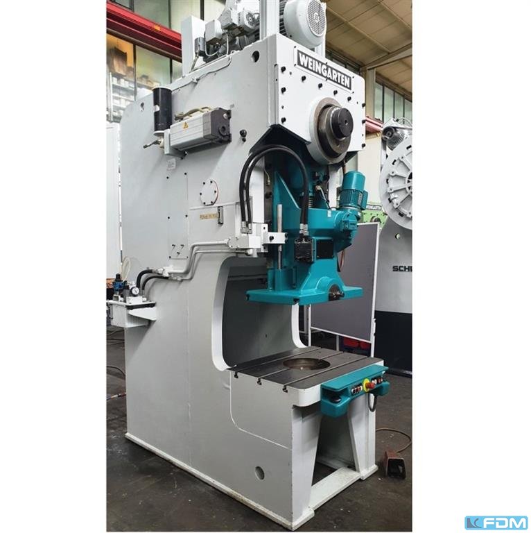 pressure:100 t throat:375 mm stroke:20 - 125 mm no. of strokes:30 - 80 /min distance table/ram, max. stroke up, adjustment up:515 mm table surface area:900 x 635 mm hole in the table:280 mm table height over floor:800 mm passage to the back:570 mm ram surface:700 x 450 mm ram adjustment:80 mm power requirement:15,0 kW weight:8,0 t dimensions (WxDxH):1,5 x 2,4 x 3,5 m German Safety: permitted for manual loading:UVV 11.062 - VBG 7n5.1 clutch:pneumatic overload protection in ram:hydraulic ram adjustment:motoric ram counterbalance:pneumatic