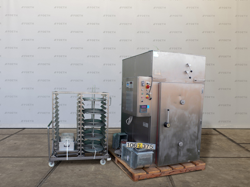 General SKU106Z375 MakeLB Bohle Ennigerloh TypeTrockenschrank TS-30 D No.601 Year of construction1990 LocationBarneveld Main Features MaterialStainless steel Volume1800 Ltr. Specified Features - Drying oven Drying oven(1x) Number of compartments:1 Capacity1800 Ltr Internal width875mm Internal depth1450mm Internal height1450mm Steam heatingcheck (4 bar) Number of doors:1 With fancheck Motor1,5 KW, 220/380 Volt With rack mounted on wheels(1x) 2x 15 slots (800x530mm) MaterialStainless steel 1.4301 (304) Information With switchgearcheck Floorspace1,6x1,3 m Total height2,6 m Weight1100 kgDiscountDrying ovensLB BohleDiscountDryers > Drying ovensBrand > LB Bohle What you can expect from Foeth: -- Machine is in working condition -- At a reduced price compared to new -- Ready for shipping to any destination worldwide -- You are welcome to inspect the machine in Barneve ...