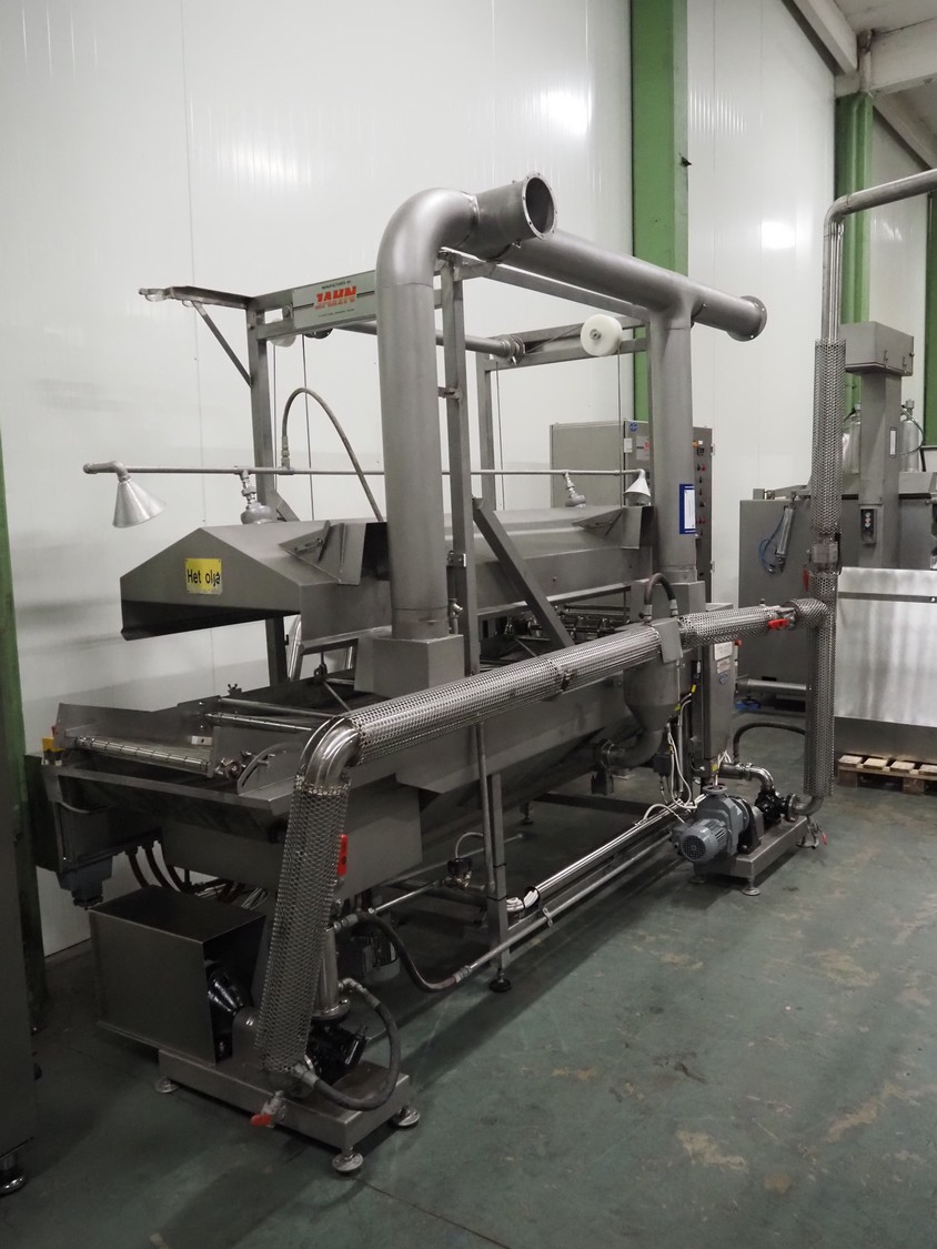 Jahn belt fryer, machine number: 897830, s/s mesh belt, belt width: 600 mm, total dimensions: 3200 mm x 2550 mm x 2850 mm. Including switch cabinet, dimensions: 1200 mm x 500 mm x 2000 mm.
