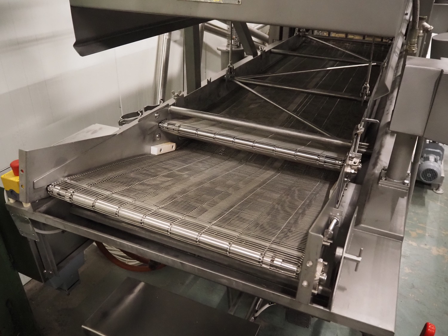 Lippert belt conveyor GF 4450-750-600 RA2257 Technical data: Conveyor length (NL): 4450 mm Frame width (NB): approx. 750 mm Belt width (GuB): 600 mm Overall height (BH): 105 mm Support feet optionally available Conveyor speed (v m/s): please contact us Drive: SEW geared motor Electrical data: 50Hz V380-500, kW 0.55 / S1 Return pulley (UR): Ø = 81 mm Drive drum (AT): Ø = 81 mm Optionally available: Supports Side guides Frequency converter for stepless speed control Prices net plus VAT ex central warehouse Dr. Sonntag GmbH & Co KG, 97076 Würzburg Features: condition: good (used) Conveying length in mm: 2427 Nominal / outside width in mm: 750 Belt width in mm: 600 Driven: YES Engine type: SEW Eurodrive KW: 0,55/S1 Conveyor speed m / s: bitte Kontaktieren scope of delivery: without supports and side guides Für eine individuelle, fachmännische Beratung setzten Sie sich einfach mit uns ...