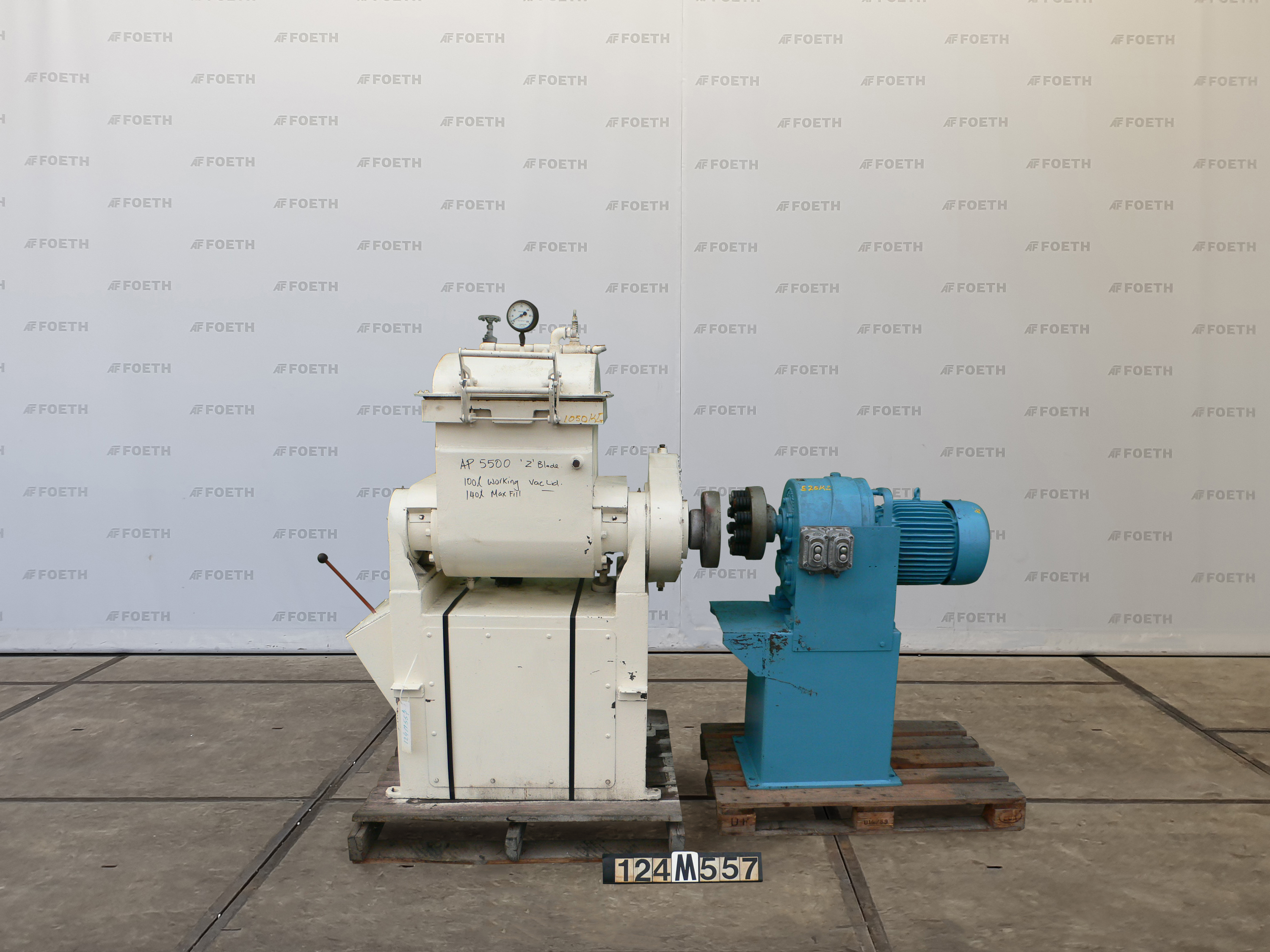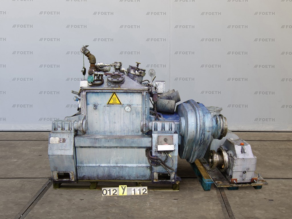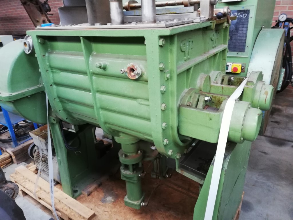 General SKU082Z322 MakeWerner & Pfleiderer, Stuttgart TypeUK-14 X/AU No.154 576 Year of constructionunknown LocationBarneveld Pressure Working pressure6 Bar Main Features MaterialMild steel Volume200 Ltr. Motor17.5 KW Specified Features - Z-blade mixer Jacketcheck Max. temperature220 Degr. C. Screw speed20/40 Rpm Arm speed27/20 Rpm (front/back) Capacity250 Ltr, Useful 200 Ltr Double shaft kneaderMixtruder (1x) Masticator-armscheck Trough sizes740x685mm With covercheck With screw dischargecheck Motor30,0 KW, 380 Volt Motor11,0/17,5 KW, 380 Volt Z-blade mixers MaterialMild steel Information With switchgear(Dim. 80x40x180 CM) Floorspacekneader 2,8x1,4 M Total height1,6 M Weight3200 KG Extra Specifications- Dimensions drive unit 1,4x1,0x1,7 M (LxWxH), weight 2130 KG Technical specs Extra informationtest pressure is achieved at 220 Degr. C.Z-blade mixersDis ...