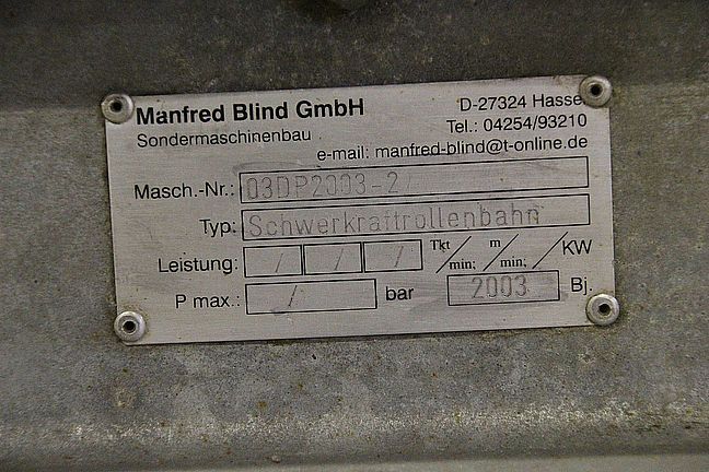 Type of machine: Gravity roller conveyor