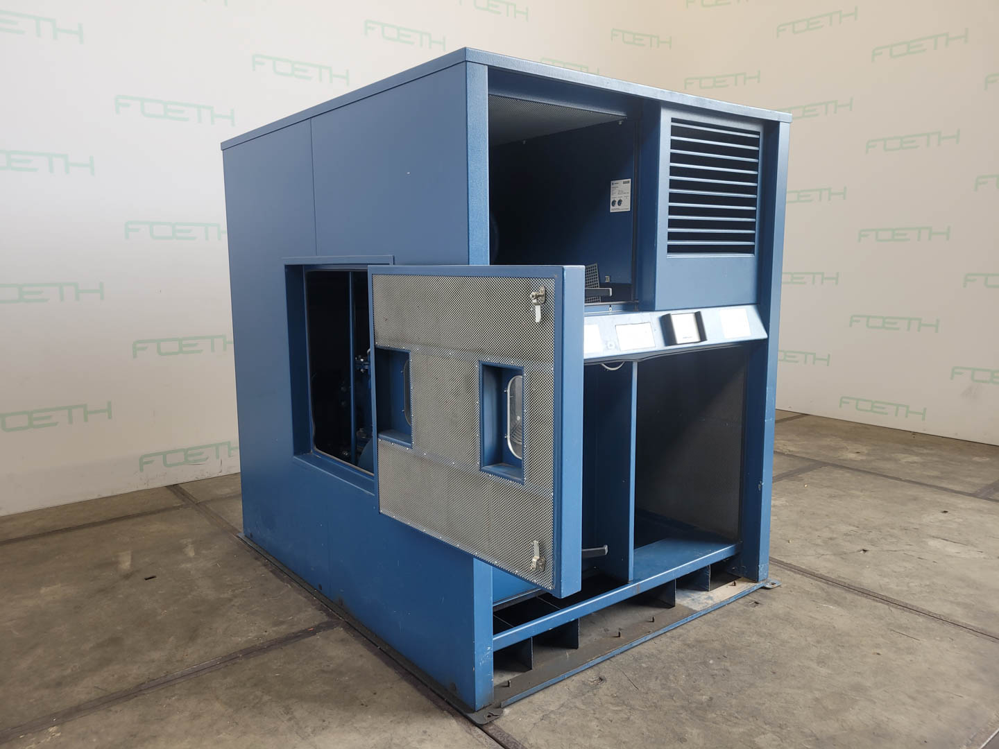 volume capacity: 1020 m³/h engine output: 7,5 kW sound - pressure - turn off level ca. max.: 75 dB suction power: 1013 bar motor speed: 2950 min-1 range L-W-H: 1,25 x 1,35 x 1,5 m weight: 577 kg Electric 400 Volt: UNUSED Delta Blower Generation 5 rotary lobe blower, type GM 15 L, design B3, size 132 S. Efficiency class IE3. Siemens motor with 3 built-in temperature sensors, soundproof enclosure. Suction pressure 1,013 bar. Volume flow in positive pressure operation 1,020 m³/h Volume flow in negative pressure operation 1,080 m³/h The device was unpacked and run for a maximum of one hour before it was discovered that it was too small. A new, larger one was then ordered. Sound enclosure made of galvanized sheet steel with oil drip tray. Painted in RAL 5001 color / front elements in RAL 7047. Segmented design with interior lining and forced ventilation. Fan impeller driven by blower shaf ...