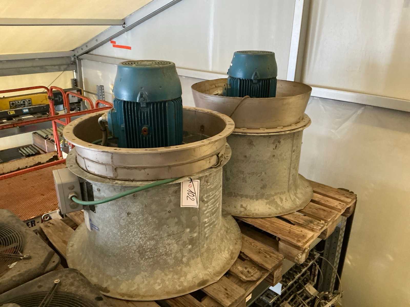 Industrial axial fan 800mm diameter ZIEHL-ABEGG fn80-sdi.6n.v7 NEW! Sold in a box of several pieces manufacturer: ZIEHLL-ABEGG type: FN080-SDI.6N.V7 Axial fan with sickle-shaped aluminum blades Diameter: 800mm Ø airflow: 10000-21000m3/h nominal airflow: 15800m3/h at 140pa air pressure motor power: 1.15kw/0.53kw Nominal values 3. phase~400V D/Y 50Hz 1.55/0.95kW 3.3/1.7A rpm:850/650/min Protection type:IP54 sound level:70 dB COSY 0.69 max temperature range:80°C Motor protection: thermal contact Protective grid type: mesh grid Dimensions (w x h x d) mm: 861 x 861 x 273