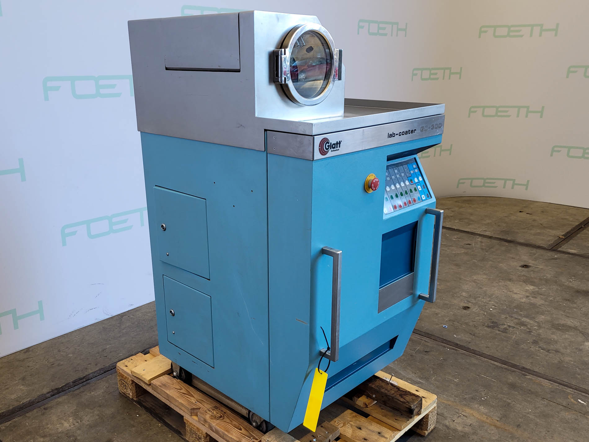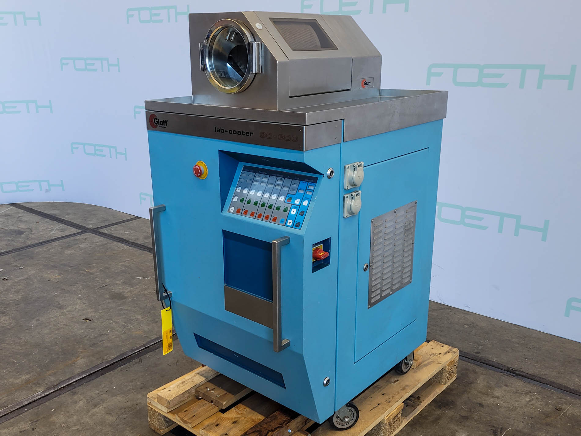 General SKU418U1312 MakeGlatt LocationBarneveld CEcheck TypeLab-coater GC-300 Main Features MaterialStainless steel Motor4 KW Inlet diameter200 mm Specified Features - Coating pan Coating installationcheck Capacity2,5 Ltr . Batch size0,5-2 kg Pan diameter300 mm Pan depth300 mm Cylindrical width210 mm Conical width90 mm In-/OutletDia. 200 mm Motor0,10 kW, 200 Volt, 3000 rpm With frequency controllercheck Pan speed10-30 rpm With electric heatingcheck (capacity: 5 kW, max. temp.: 70°C) With fancheck (2x blowers) Capacity10-250 m³/h Motor0,36 kW 400 Volt, 2800 rpm & 4,0 kW, 400 Volt, 4670 rpm With air filtercheck With spraying armcheck MaterialStainless steel 1.4301 (304) Information No.100703 Year of construction2002 Mounted on framecheck Mounted on wheelscheck With switchgearcheck Floorspace1,2x1,0 m Total height1.5 m Weight420 kgCoating pansOther ph ...