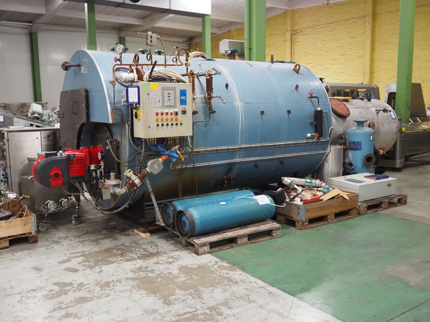1 gebr. Boiler --------------------------- Manufacturer : LOOS Gunzenhausen Type : U-HD 1250 Heating surface approx. : 20 m² Boiler capacity max. : 1.250 kg/h Operating overpressure : 13 bar Increased test overpressure : 23 bar Water content at NW approx. : 993 l Water content full approx. : 1.365 l Year of manufacture : 2003 CE mark : 0036 equipped with Weishaupt gas burner G7/1-D, ZMD, 300-1,750 kW, 15-500 mbar, Gas control section, control cabinet, feed water pump and the existing coarse and fine fittings.