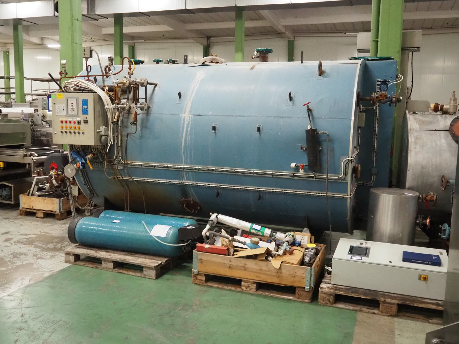 Machine feature: A standard steam boiler, 10 to 13 bar Manufacturer Part Number: K19105/AV, Type: 128.9, Year of construction: 1990 Output: 13 bar, 10.8 tons of steam per hour Up to 300 °C Steam temperature With white main burner for light oil, Type: RGL70(2-A), Number: 5163093 Year of manufacture: 2002, Output up to 10,500 kW With a horizontal feed water tank, Manufacturer: Kyll, Bergisch Gladbach Content: 19,860 liters, Permissible temperature: 110°C With a water treatment system for boiler water with a separate control cabinet system