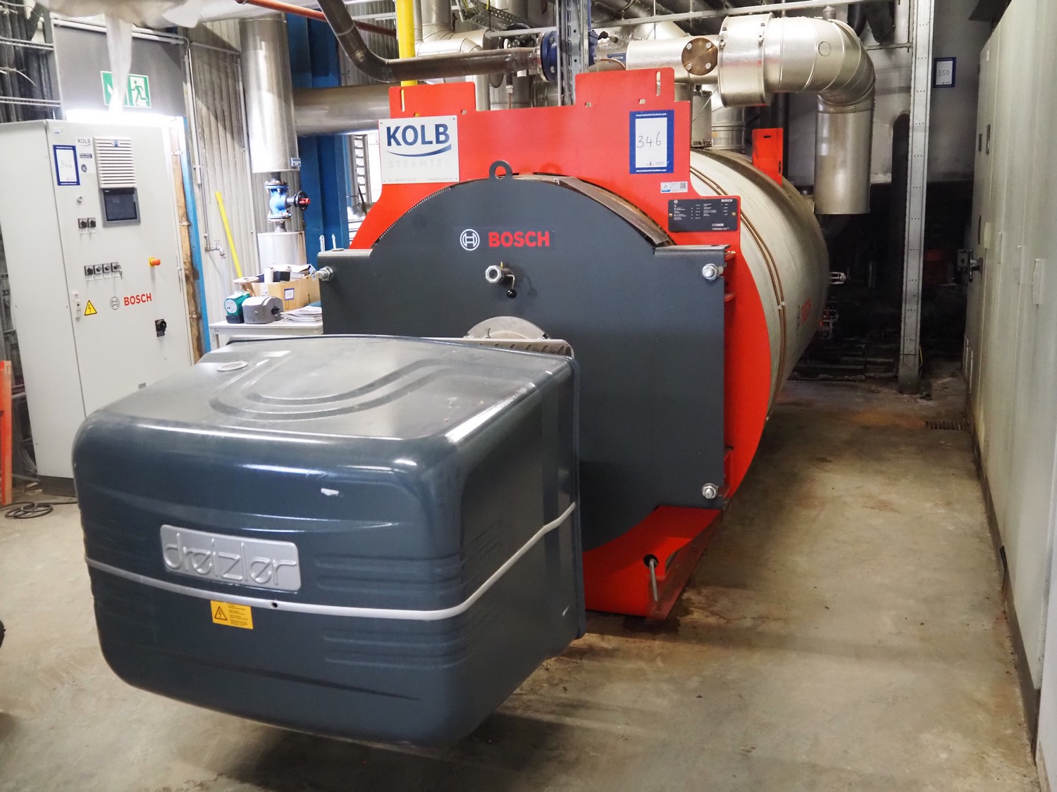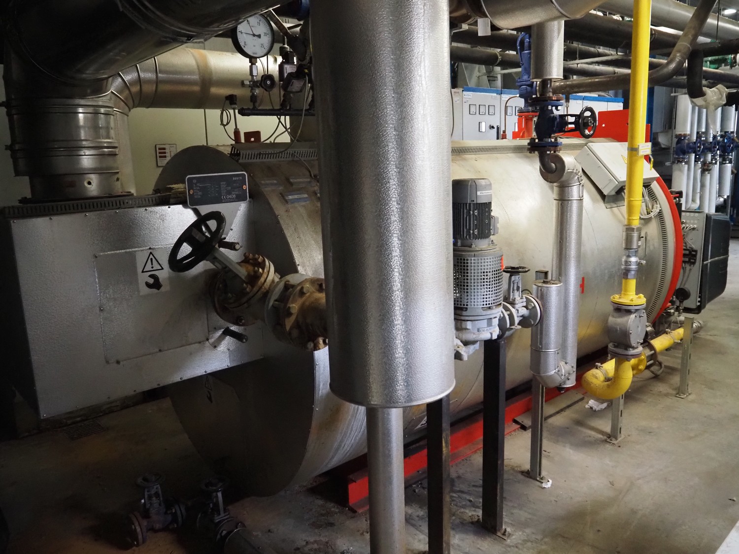 1 standard steam boiler, 10 to 13 bar Manufacturer No. K19105/AV Type: 128.9, built in 1990 Output 13 bar, 10.8 tons of steam per hour +Up to 300 °C steam temperature With white main burner for light oil Type: RGL70(2-A), No. 5163093 Year of manufacture 2002, output up to 10,500 kW With 1 horizontal feed water tank Manufacturer: Kyll, Bergisch Gladbach Capacity: 19.860 l, Max. Temp. 110°C, with 1 water treatment system for boiler water with sep. Control cabinet system