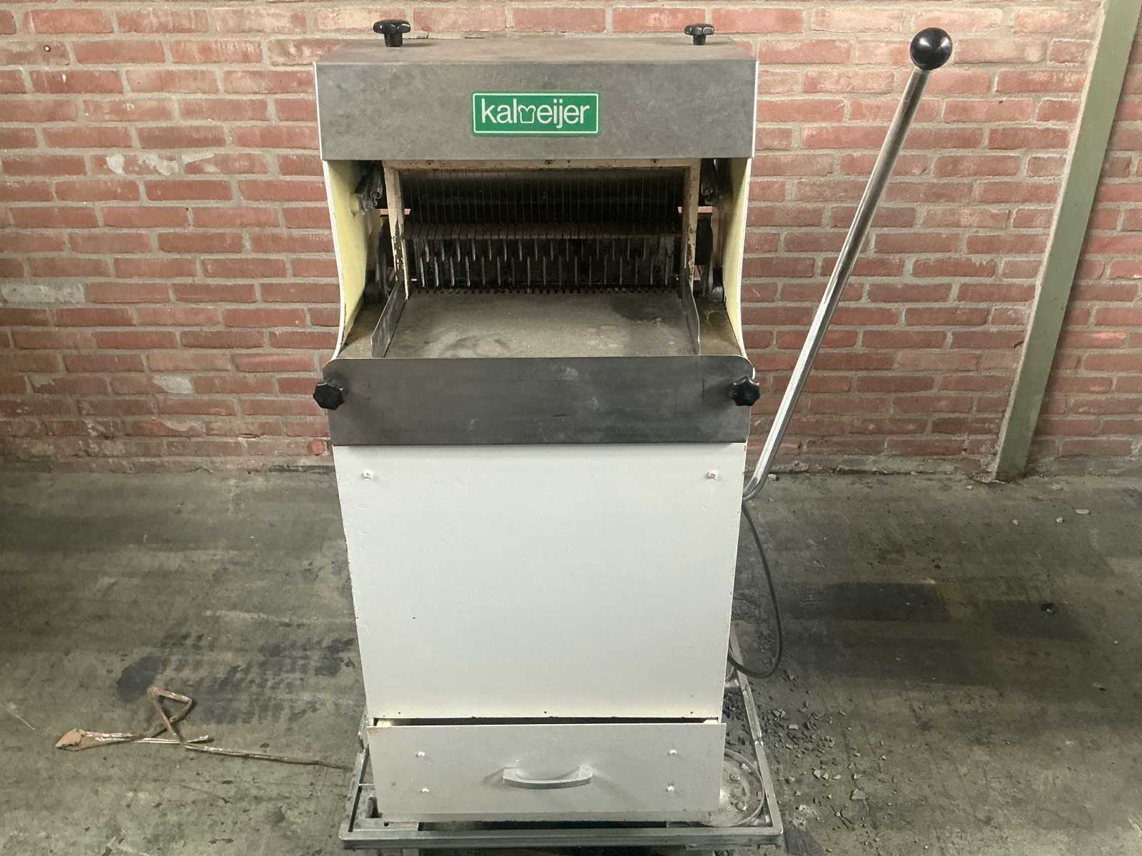 Height=1.6 m, Overall length= 1.6 m, Overall width= 1 m, Producer: JAC condition: refurbished In store Made in Belgium Description Renovated slicer JAC EEM 450/11. Thanks to its dimensions it is suitable for bakeries, grocery stores. - easy to use - quiet operation - slice thickness 11 mm - blade oiling system - 400 Volt 50 Hz - maximum bread size (width x height) 30 x 16 cm - removable crumb collector - equipped with wheels