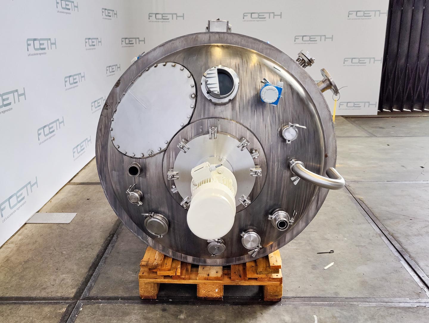 General SKU268U459 MakeBunting Titanium No.F7827 Year of construction1990 Mounted on legscheck Pressure Working pressure3 Bar Vacuum possiblecheck Working pressure jacket6 Bar Vacuum possible jacketcheck Main Features MaterialTitanium Volume1200 Ltr. Motor0.55 KW Specified Features - Stainless Steel Reactor Reactorcheck Capacity±1300 Ltr. Vessel sizesDia: 1150x1800mm Conical bottomcheck Dished top sidecheck Manholecheck Top connectionsDia: 47mm(4x), 70mm (3x), 100mm OutletcheckDia: 70mm With jacketcheck With propellor stirrercheck double Motor0,55kW, 230/400 Volt, 675 rpm Stainless Steel Reactors MaterialYttrium, Titanium Beta C, Stainless steel 1.4306 (304L), Titanium Information LocationBarneveld Floorspace1,5x1,5m Total height3m Weight1300kgStainless Steel ReactorsBunting TitaniumReactors > Stainless Steel ReactorsBrand > Bunting Titanium What you ca ...