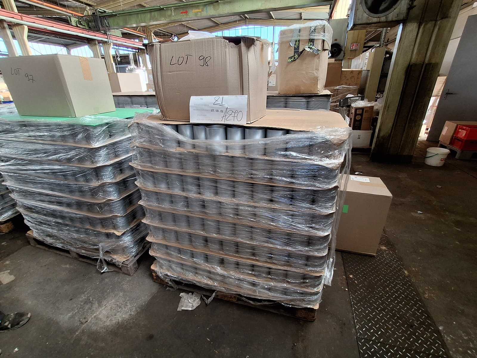 Pallet cans 99/130, 700 cans with lid red size 99/130 Auction-ID: A7-45677-73