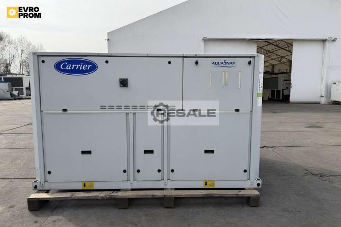 Aircooled chiller CARRIER 30RBS 160A0234 PE 156 KW Cooling capacity: 156 kW / 44.36 tons (12/7 — 35°C) Year of manufacture: 2014 Options: Hydraulic module Refrigerant circuit: 2 pcs. Heat exchanger: Plate Condenser: Microchannel, Aluminum Compressors: 4 pcs. Copeland ZP182KQE-TFD-604 (scroll) Type of refrigerant: R410а Number of fans: 2 pcs. Hydraulic module: 2 pcs. water pump GRUNDFOS AC30-142, expansion vessel. Dimensions: 2.05x2.26x1.33 m. Weight: 945 kg. Working hours: 3421/3417/5172/4684 h. Condition: Good