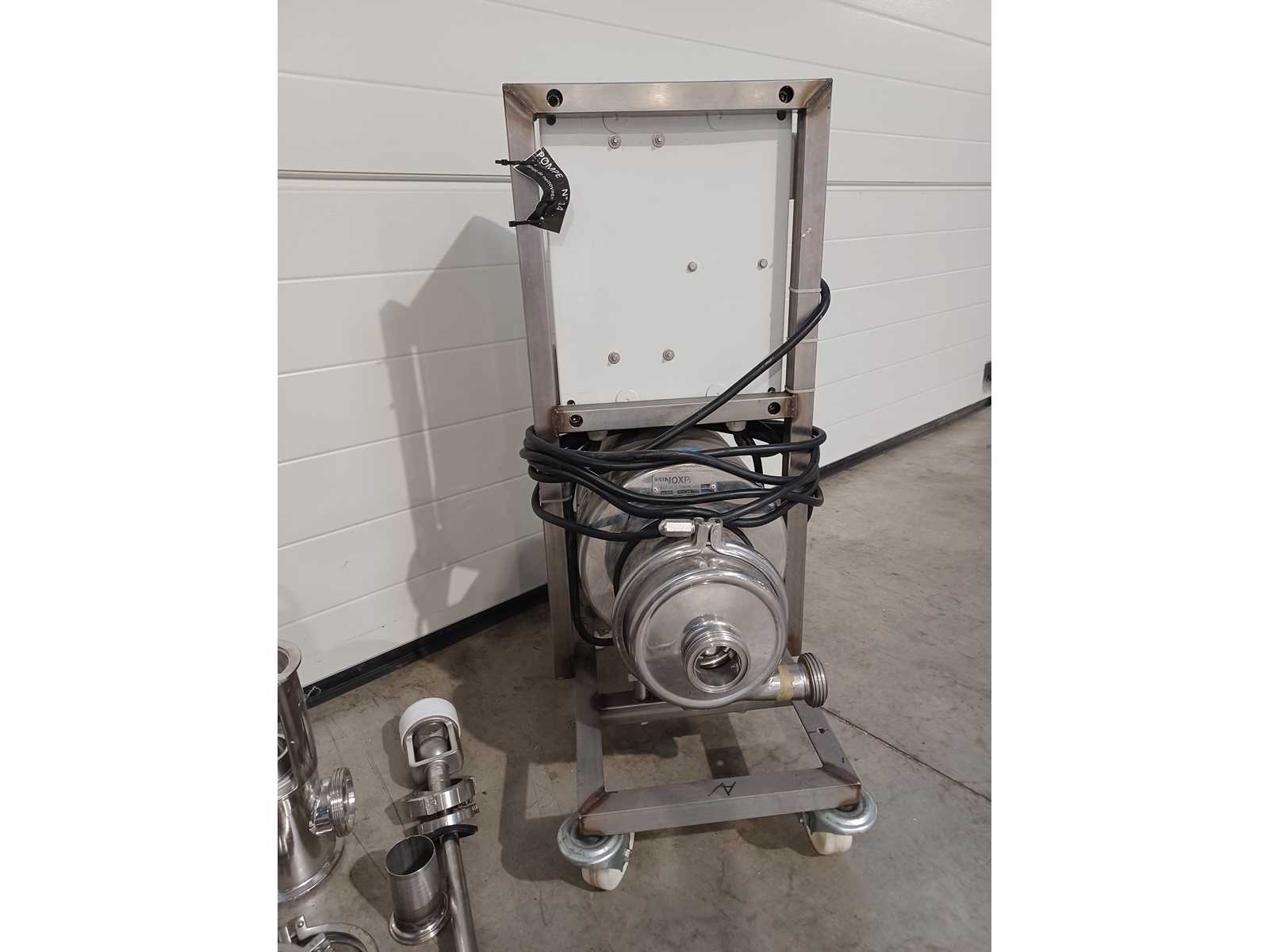 \"The Inoxpa SE-200 hygienic centrifugal pump is a piece of equipment designed for the safe transfer of liquids in the food, pharmaceutical and cosmetics sectors, where hygiene and reliability are essential. This SE-200 model from the Inoxpa brand guarantees a smooth flow and safe handling of the products, while respecting strict health standards. Offered as is, it is an effective solution for professionals wishing to integrate or recommission high-performance pumping equipment. With dimensions of 80 cm long, 60 cm wide and 110 cm high, this compact pump is easily installed in a production or laboratory environment. Its weight of 83 kg ensures optimal stability during operation and limits vibrations. The Inoxpa SE-200 is therefore a reliable and robust tool for the hygienic pumping of sensitive liquids.\" Auction-ID: A1-44765-314