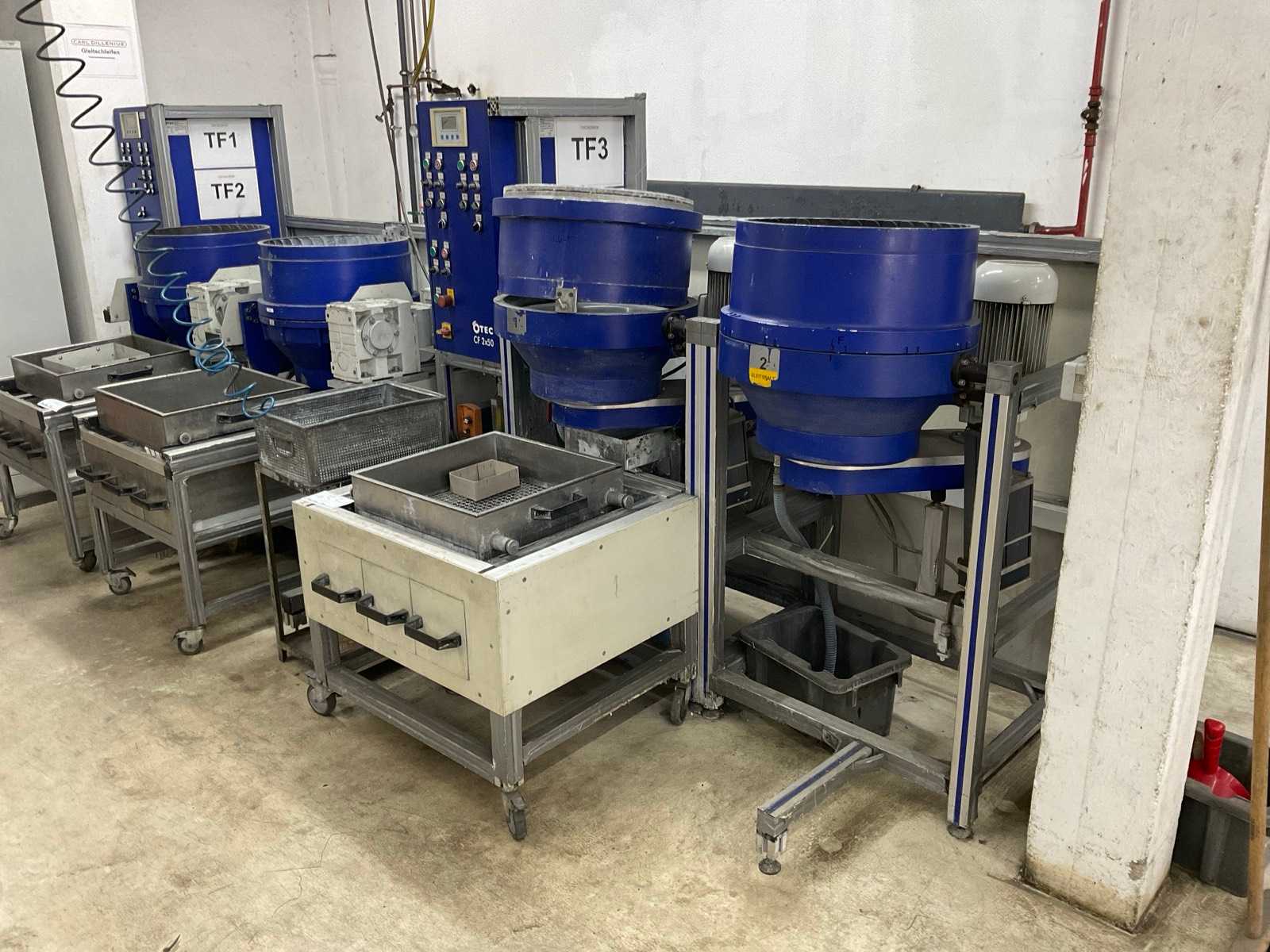 Centrifugal grinding machine / sliding grinding machine for deburring, rounding, polishing of factory troughs. Machines with 18, 60 or 160 litre capacity. Machines incl. dosing pump, speed control and control cabinet - separian unit optional. Detailed offer on request;; New