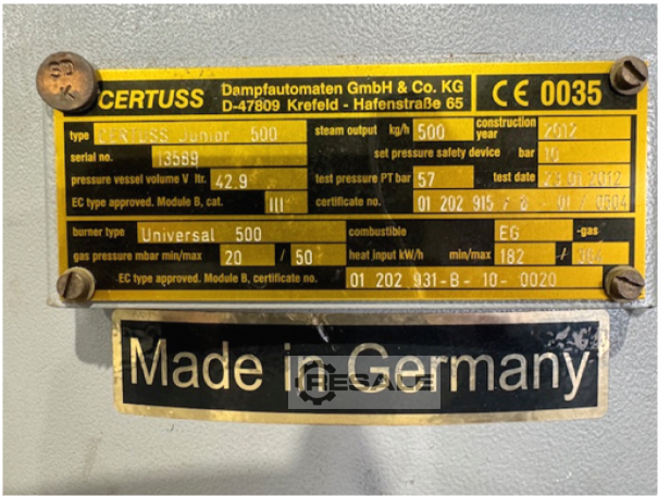 | 2007 | CERTUSS | Junior 300 EG (natural gas) | 12000 EUR | [Oct 2024] |
